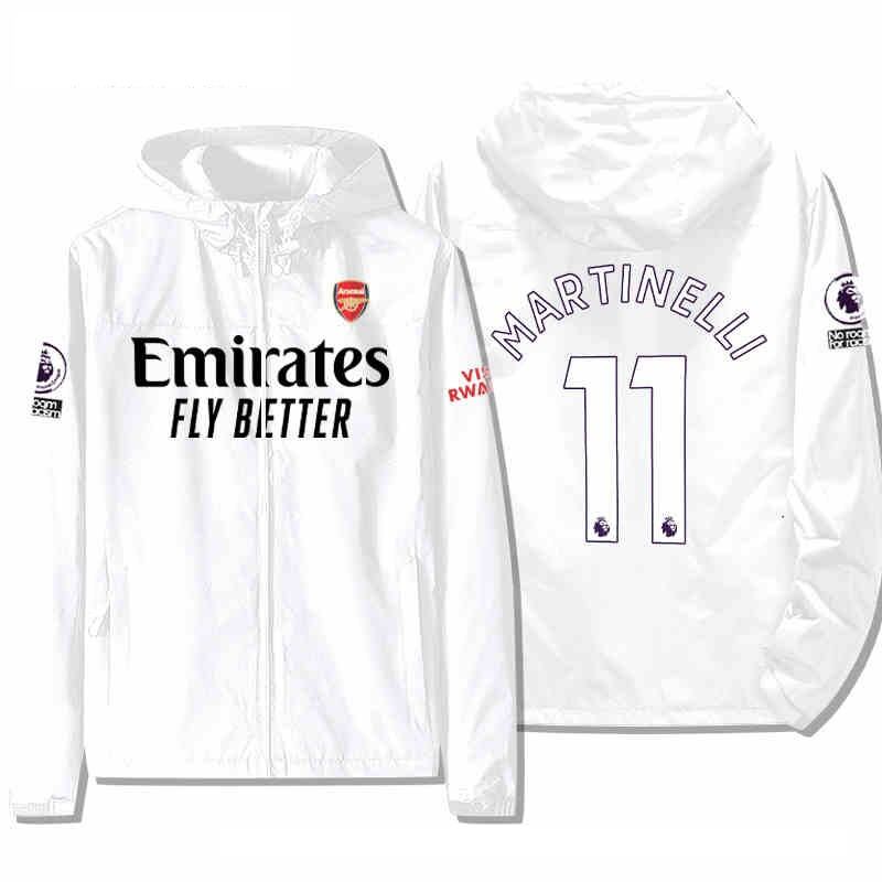 アーセナルFC ジャケット スレーシング MARTINELLI 11番 ファン用ジャケット 冬服 バイクウエアグッズ 防風 長袖ジャケット アウトドアスポーツウェア 釣り服 ブラック ホワイト ネイビー カーキ レッド 5色