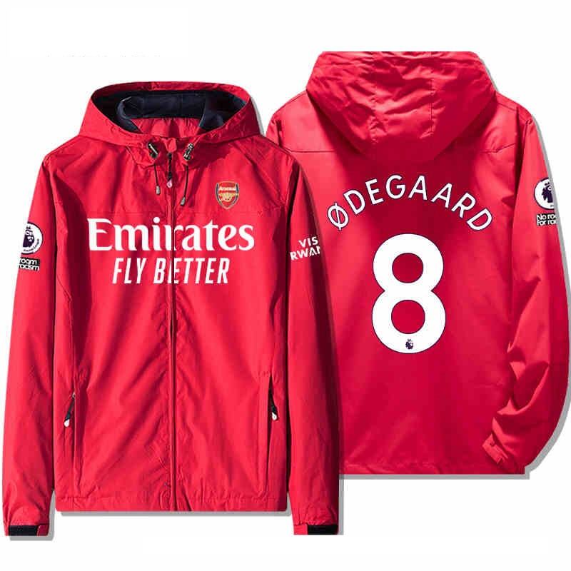 アーセナルFC ジャケット スレーシング ウーデゴール 8番 ファン用ジャケット 冬服 バイクウエアグッズ 防風 長袖ジャケット アウトドアスポーツウェア 釣り服 ブラック ホワイト ネイビー カーキ レッド 5色