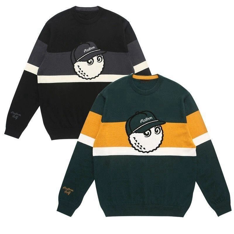 malbon golf マルボンゴルフ 長いセーター ニット 長袖 新作 レディース メンズ スポーツ カジュアル 防寒 暖かい ブラック グリーン 2色