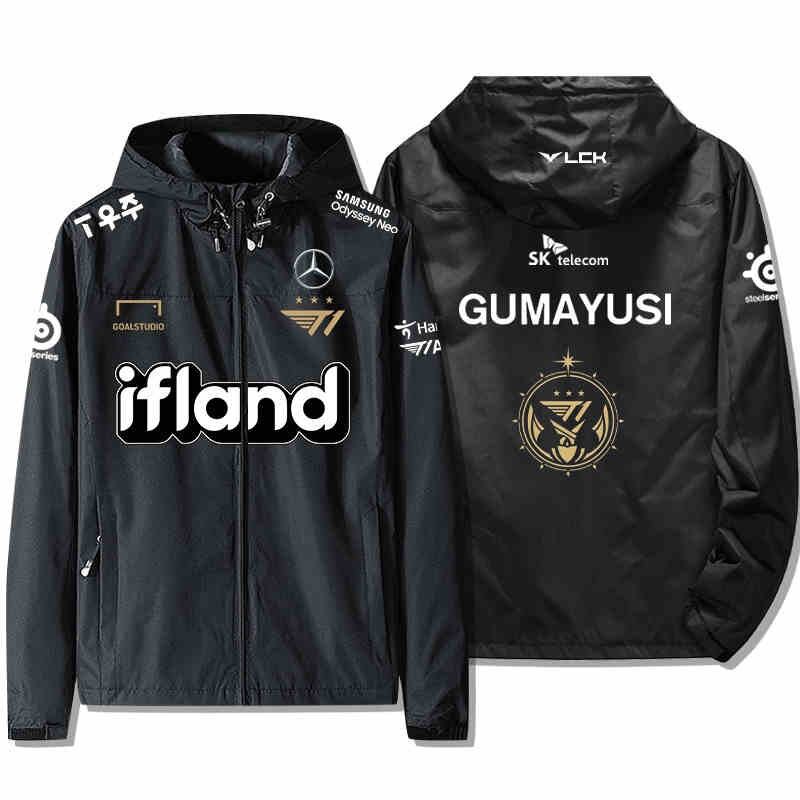 IFLAND ロゴ ジャケット スレーシング Gumayusi T1選手 ファン用ジャケット 冬服 バイクウエアグッズ 防風 長袖ジャケット アウトドアスポーツウェア 釣り服 ブラック ホワイト ネイビー カーキ レッド ブルー 6色