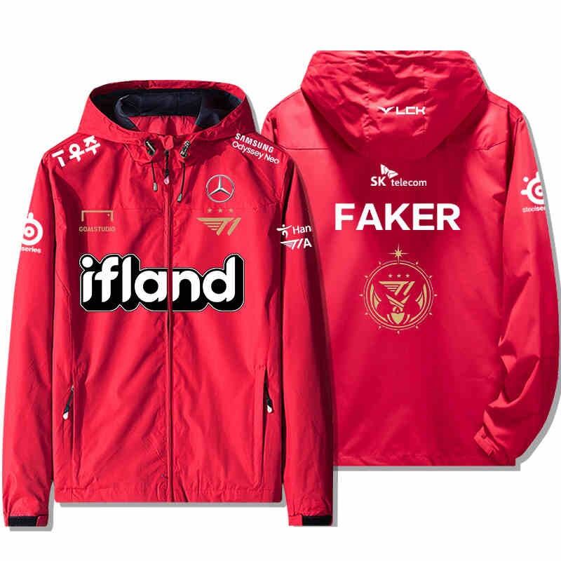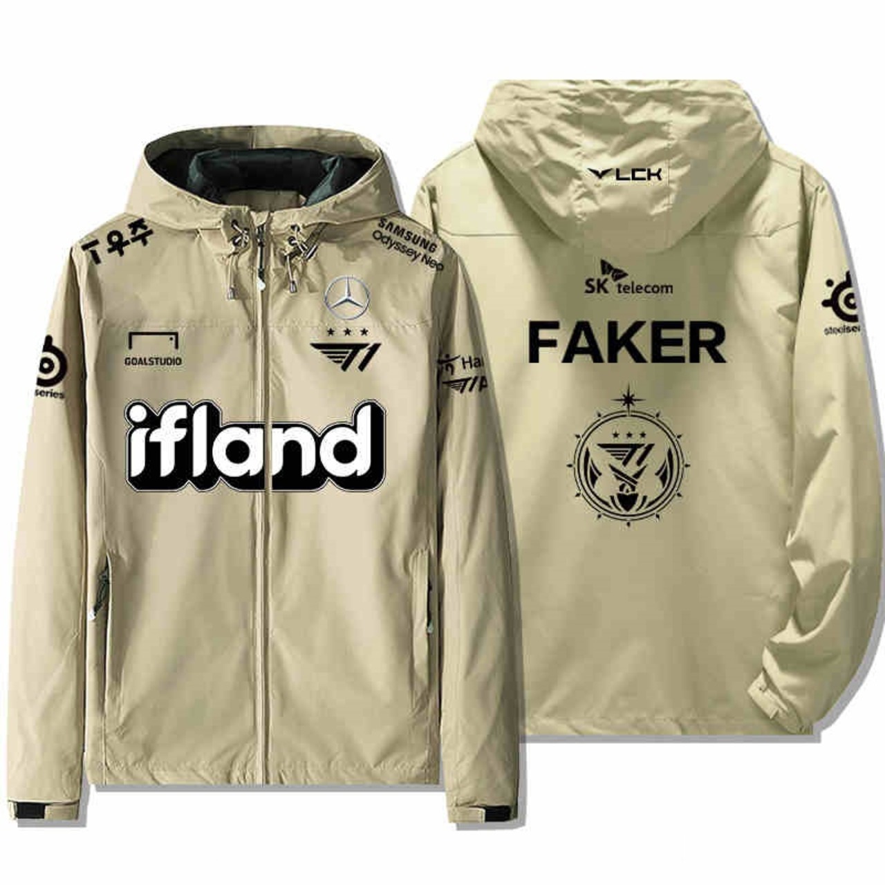 IFLAND ロゴ ジャケット スレーシング フェイカー 韓国選手 ファン用ジャケット 冬服 バイクウエアグッズ 防風 長袖ジャケット アウトドアスポーツウェア 釣り服 ブラック ホワイト ネイビー カーキ レッド ブルー 6色
