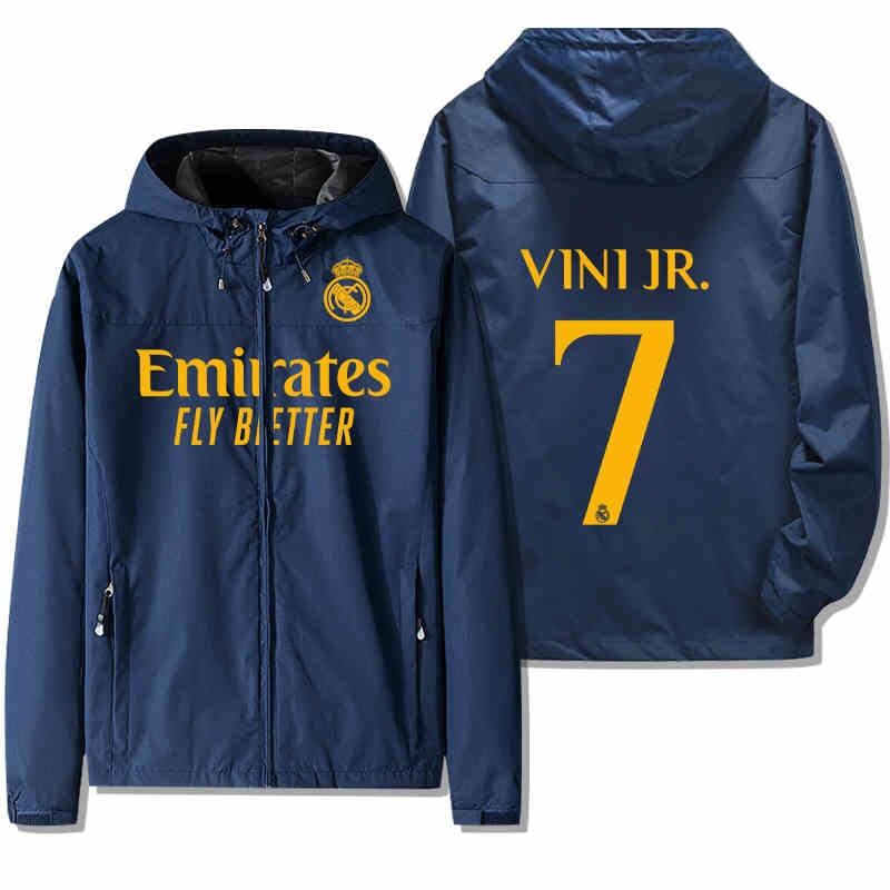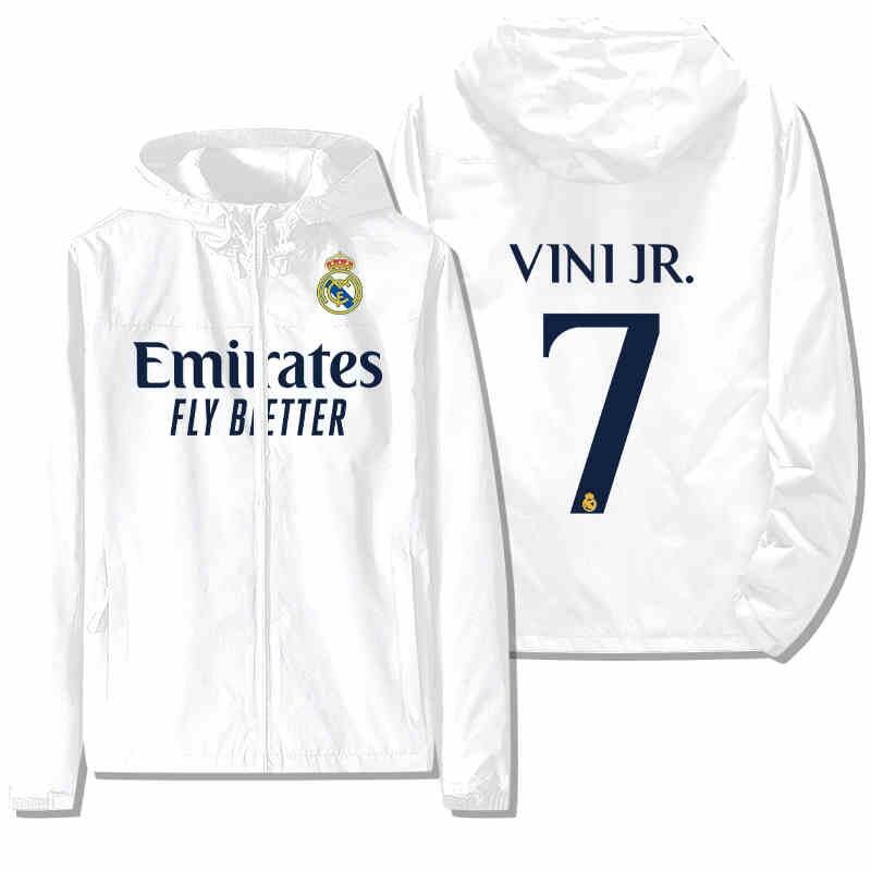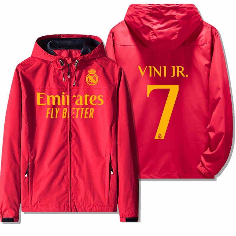 エミレーツ LOGO ジャケット スレーシング Vini Jr 7番 サッカー選手 ファン用ジャケット 冬服 バイクウエアグッズ 防風 長袖ジャケット アウトドアスポーツウェア 釣り服 ブラック ホワイト ネイビー カーキ レッド 5色