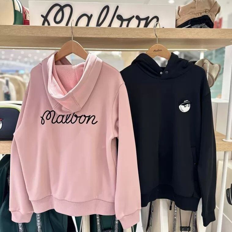 malbon golf マルボンゴルフ パーカー レギュラーフィット スウェット 新作 ゴルフウェア 男女兼用 スポーツ カジュアル 防寒 暖かい ブラック ピンク