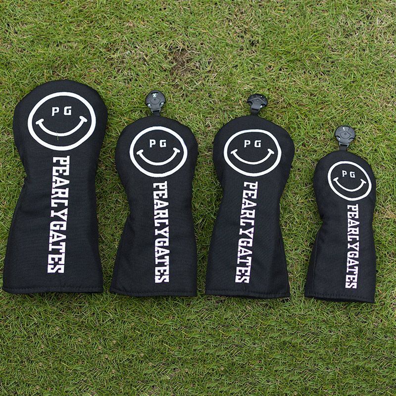 大人気 PEARLYGATES パーリーゲイツゴルフ クラブ ヘッドカバー 4点セット 1+3+5+UT アイアン用 ドライバー用 ゴルフヘッドカバー スマイル ブラック