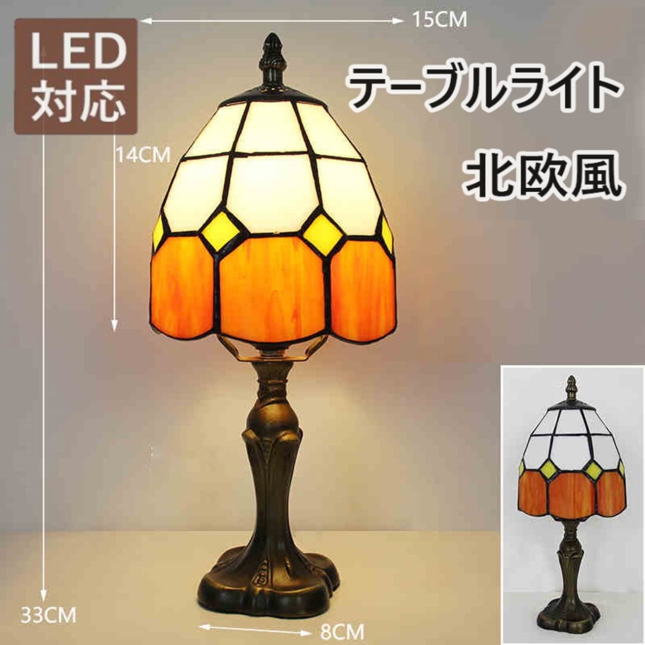 テーブルライト おしゃれ 卓上ライト オレンジチェック モロッコ風 ガラス ステンドグラスランプ デスクライト 北欧 おしゃれ アンティーク 間接照明 インテリア ホテル LED