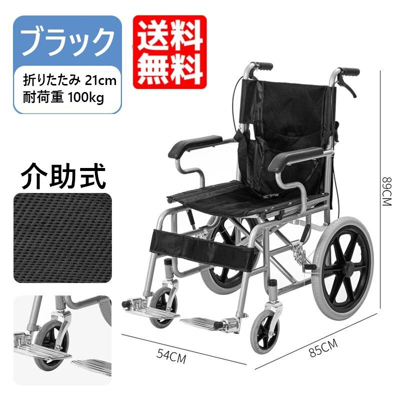 車椅子 軽量 コンパクト 介助用 ブラック 車いす 折りたたみ式 軽量 通気性 室内用 プレゼント 贈り物 ギフト