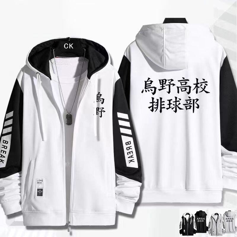 ハイキュー 烏野高校 日向翔陽 ジャケット コスプレ衣装 パーカー 仮装 Cosplay 男女兼用 春秋冬 ホワイト ブラック グレー