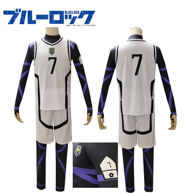 凪誠士郎 ユニフォーム BlueLock ブルーロック 4点セット 背番号 7番 コスプレ衣装 スポーツセット 男女兼用 ホワイト
