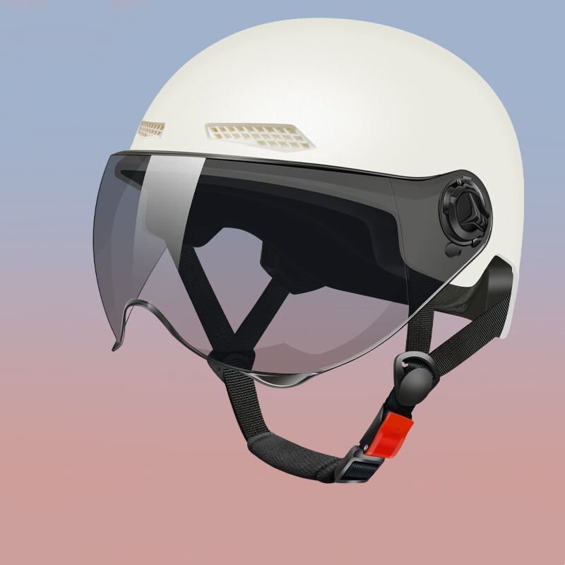 この自転車ヘルメットは厚くて柔らかいクッションインナーと後頭部のサポート部分が適度にしなる設計により後頭部までしっかり守れます。ヘルメットの前にシールドも装備しており、全方位から守ってくれます。