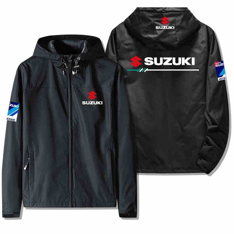 SUZZUKI ジャケット スレーシング スズキ 鈴木 バイクウエアグッズ 防風 自転車 登山 長袖ジャケット アウトドアスポーツ ウェア 釣り服 バイカー アウター ブラック ホワイト ネイビー レッド カーキ 5色
