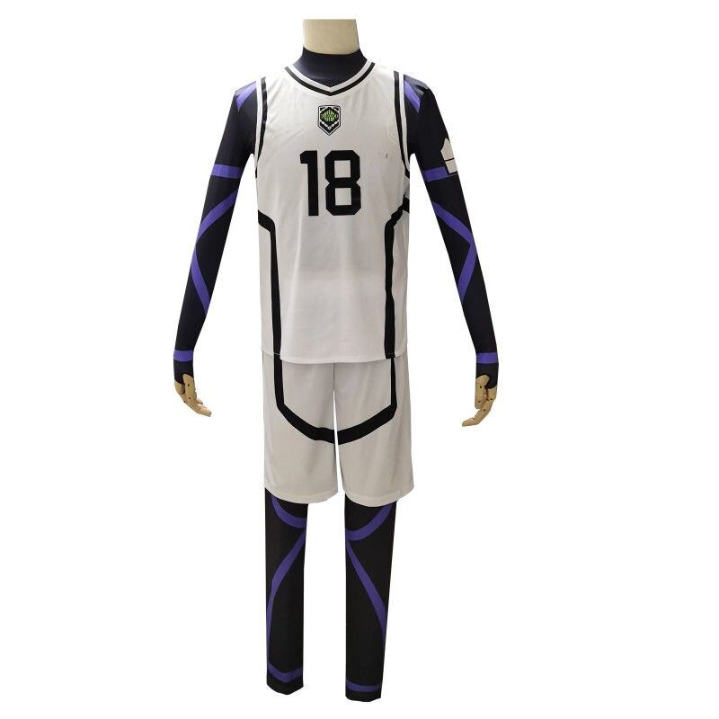 馬狼照英 ユニフォーム BlueLock ブルーロック 4点セット 背番号 18番 コスプレ衣装 スポーツセット 男女兼用 ホワイト
