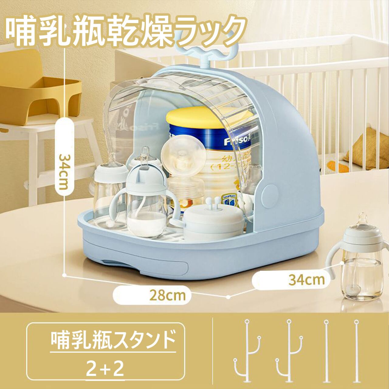 哺乳瓶ラック 蓋付き ベビー 哺乳瓶 消毒 乾燥棚 ベビー 貯蔵箱 哺乳瓶 消毒ケース ベビー 哺乳瓶 スタンド ケア蓋 哺乳瓶 乾燥 乾燥機 無菌 ベビー ホワイト ブルー イエロー