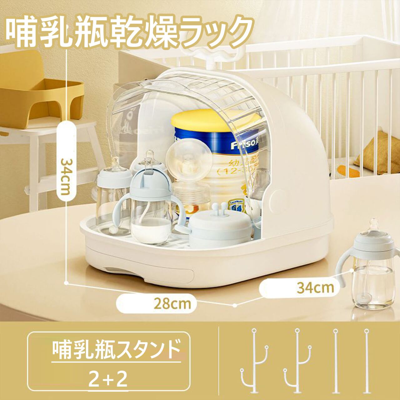 安全で信頼性が高く、無臭の乾燥を保証します。衛生的なデザインなので、さまざまな形状のボトルを安全に乾燥でき、赤ちゃんを清潔に保つことができます。