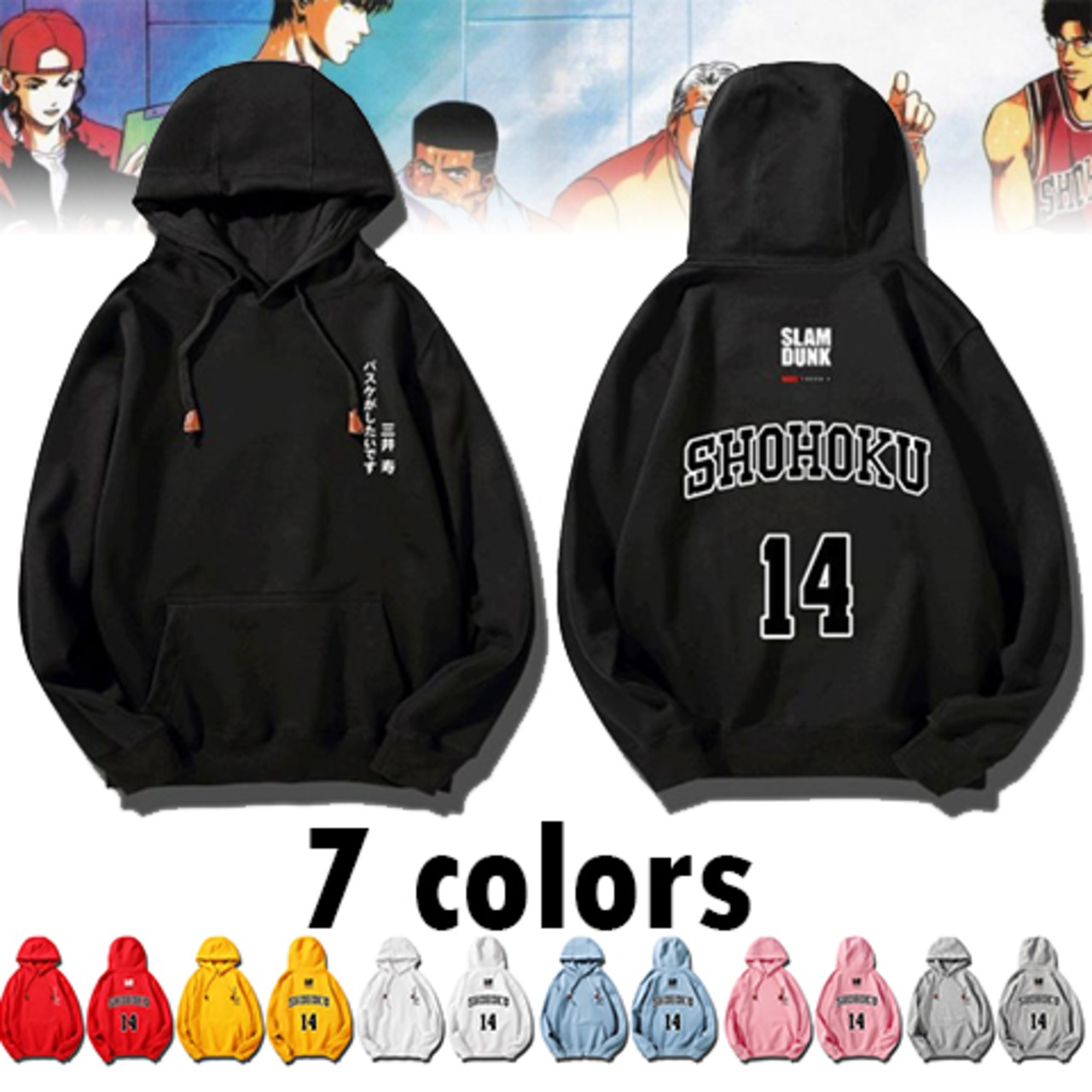 スラムダンク 湘北高校 三井寿 パーカー SHOHOKU コスプレ衣装 背番号 14番 コットン スポーツ 長袖 仮装 Cosplay 大きいサイズ 男女兼用 春秋冬 ブラック ホワイト グレー