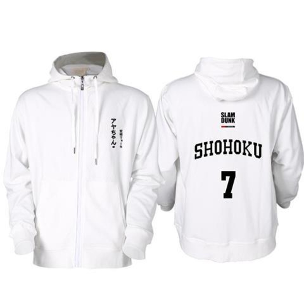 スラムダンク 湘北高校 宮城リョータ ジップアップパーカー SHOHOKU コスプレ衣装 背番号 7番 コットン 仮装 Cosplay 大きいサイズ 男女兼用 春秋冬 ブラック ホワイト グレー