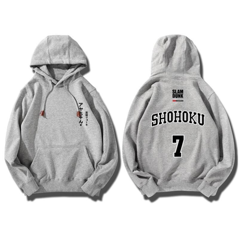 スラムダンク 湘北高校 宮城リョータ ジップアップパーカー SHOHOKU コスプレ衣装 背番号 7番 コットン スポーツ 長袖 仮装 Cosplay 大きいサイズ 男女兼用 春秋冬 ブラック ホワイト グレー