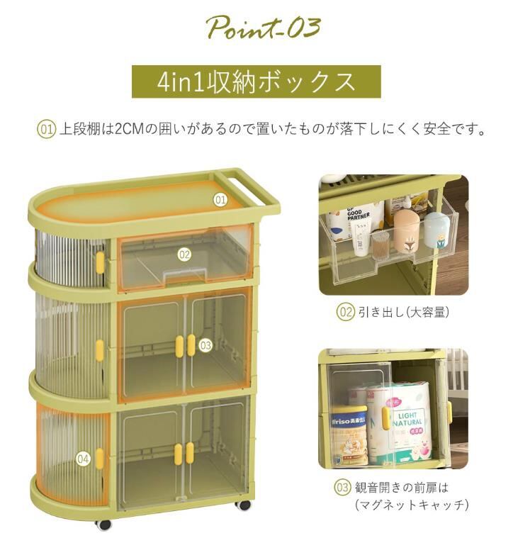 4段 折り畳み 収納棚 多層 収納ワゴン キャスター付き 軽量 収納ラック 新生児 哺乳瓶保管ケース ベビーワゴン ベビー用品収納 引き出し 洗面所収納