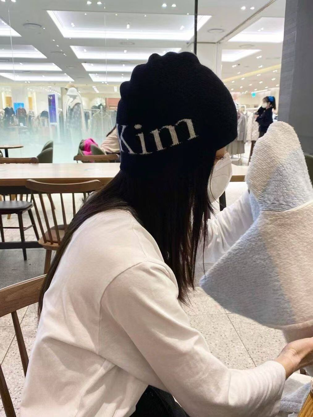 Matin Kim マーティンキム 帽子 ニット LOGO ロゴ ビーニー ストライプ 防寒 冬 韓国ファッション レディース ブラック ホワイト グレー