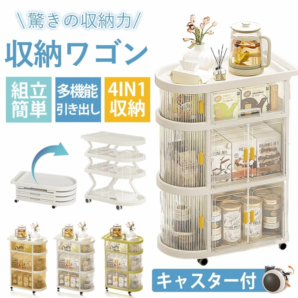 4段 折り畳み 収納棚 多層 収納ワゴン キャスター付き 軽量 収納ラック 新生児 哺乳瓶保管ケース ベビーワゴン ベビー用品収納 引き出し 洗面所収納