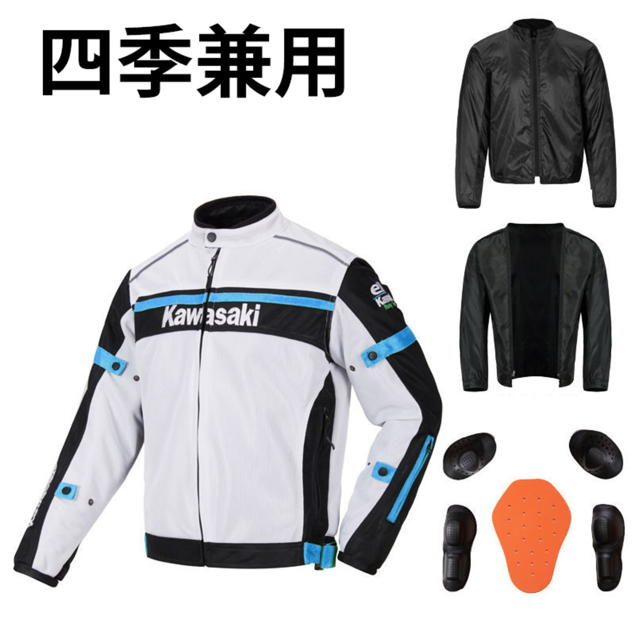 KAWASAKI 川崎 四季兼用 ジャケット バイクウエアグッズ 春夏秋冬 メーカー 車 モータースポーツ 防水 防風 防寒 メンズ ウエア 2024新作 S~4XL ブルー グリーン