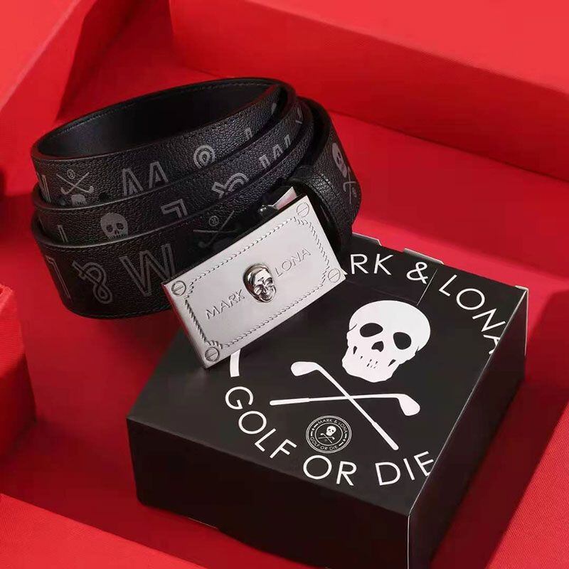 MARK & LONA マーク&ロナ ゴルフ ベーシック ベルト 本革 クロコダイル柄 牛革 メンズ ベルトストライプ ウエストベルト ホワイト ブラック