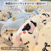 もこもこ 布団カバー 4点セット 犬模様 フランネル 洗える 掛け カバー 吸湿 発熱 暖かい 冬用 防寒 ベッドシーツ 枕カバー 寝具セット 秋冬 北欧 ホワイト×ブルー