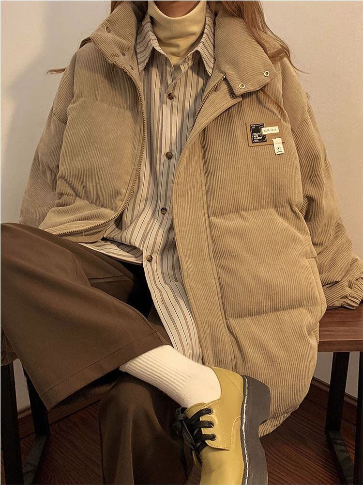 中綿コート コーデュロイ キルティングコート ジャケット レディース 無地 アウター 秋冬 長袖 ハイネック 中綿 コーデュロイ 大きいサイズ ブラウン ベージュ