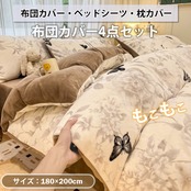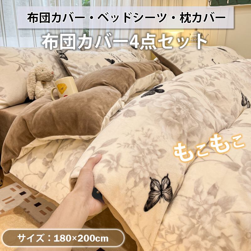 毛布 もこもこ 布団カバー 4点セット ふわもこ フランネル 蝶 掛け布団カバー ベッドシーツ 枕カバー ふわふわ おしゃれ 洗える 暖かい 冬用 防寒対策 寝具カバーセット