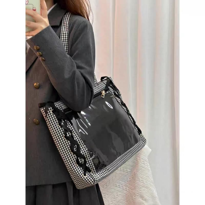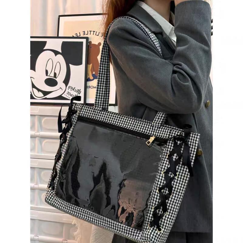 痛バッグ トートバッグ ブラック リボン A4 痛バック 推し活バッグ いたばっく いたば 推し活 バッグ 肩掛け人気 おしゃれ かわいい