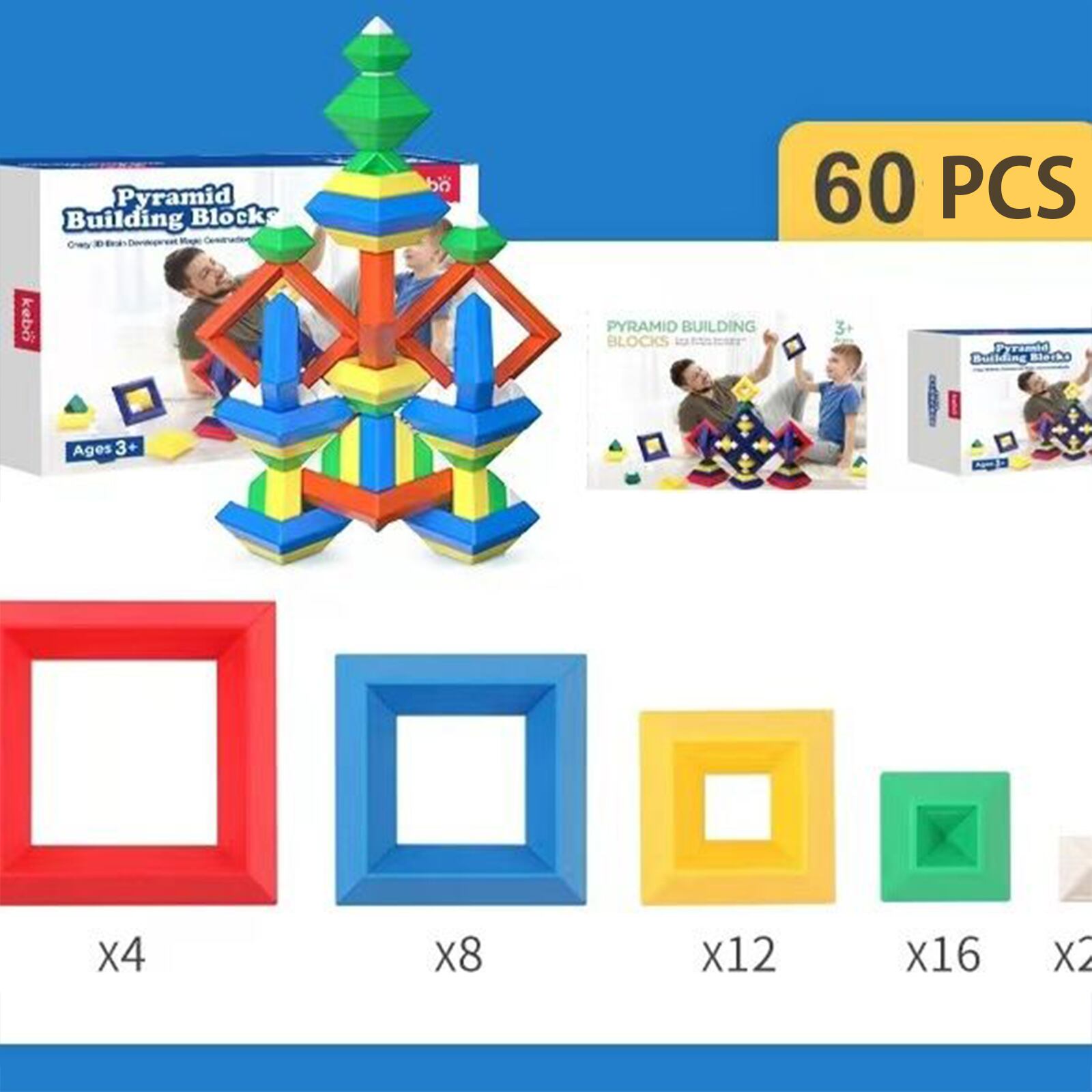知育玩具 モンテッソーリ 教具 60PCS ブロック 積み木 金字塔ブロック おもちゃ モンテッソーリ教育 子供オモチャ 子供玩具 2歳 3歳 4歳 5歳 6歳 プログラミング