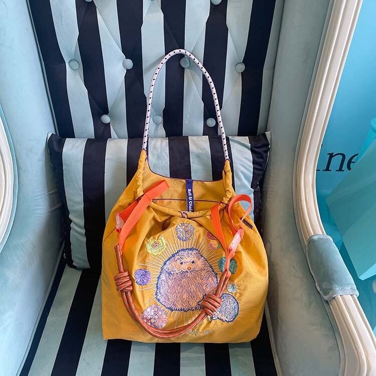 Ball Chain ボールアンドチェーン エコバッグ ハリネズミ トートバッグ 刺繍 大容量 ショルダーバッグ Mサイズ イエロー