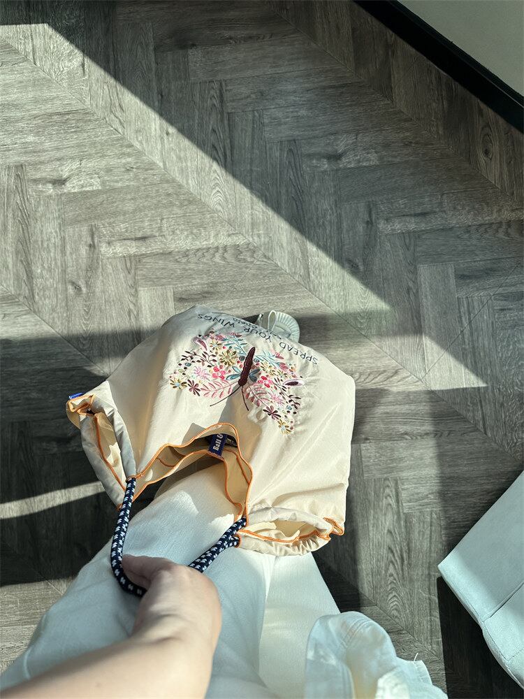 持ち手の部分で伸縮可能ですので、入口をキュッとさせてることも出来ます。