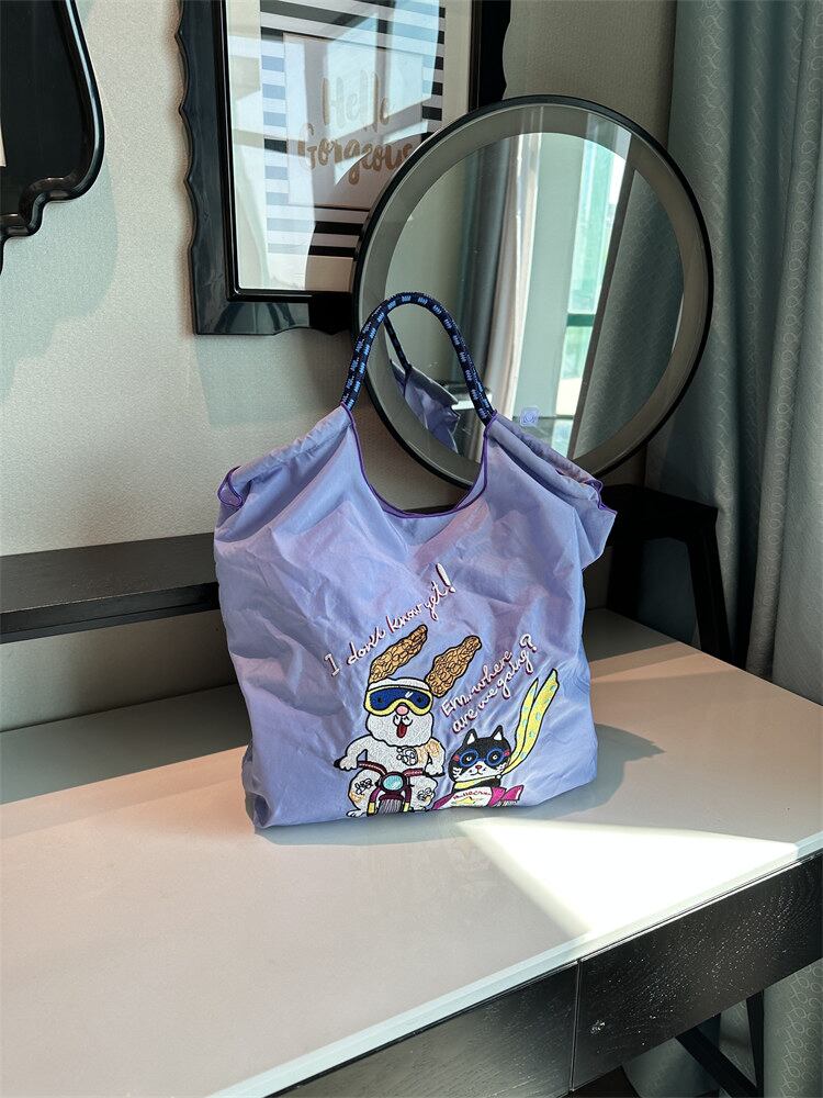 Ball Chain ボールアンドチェーン エコバッグ トートバッグ 刺繍 大容量 ショルダーバッグ Mサイズ パープル ダークグレー